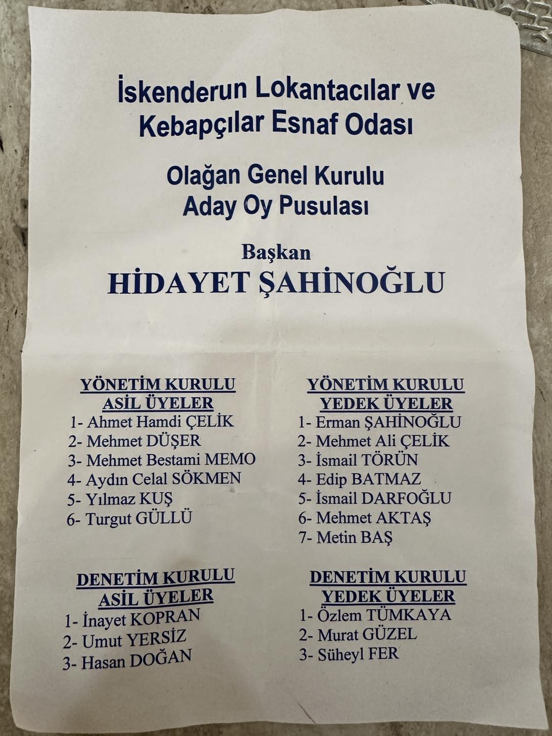 İskenderun Lokantacılar, Pastacılar ve Kebapçılar Esnaf Odası Olağan Genel Kurul Toplantısını yaptı. Genel kurulda mevcut başkan Hidayet Şahinoğlu, üyelerin güvenini yeniden kazanarak görevine devam etti. Genel kurula oda başkanları, odaya bağlı esnaflar, İskenderun Ticaret ve Sanayi Odası Başkanı Levent Yılmaz ile İl Ticaret Müdürlüğü temsilcileri oda başkanları katıldı. Esnafın yoğun ilgi gösterdiği toplantı, birlik ve beraberlik mesajlarının öne çıktığı bir atmosferde gerçekleşti.